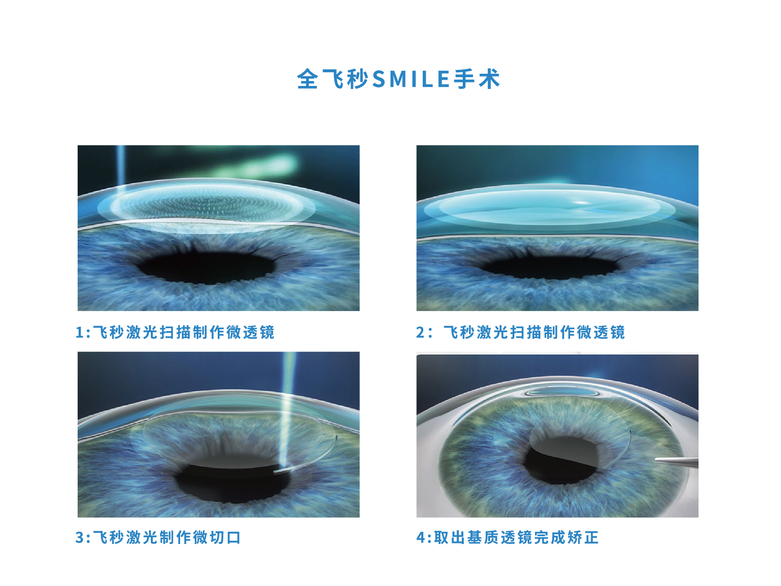 全飞秒由德国蔡司VisuMax全飞秒激光系统来完成。它发射的激光可利用超微空间聚焦的特点,按照患者术前的检查数据,在角膜内完成深浅不同的两次扫描,制作出角膜基质透镜,并经由角膜周边切口取出即可完成手术。